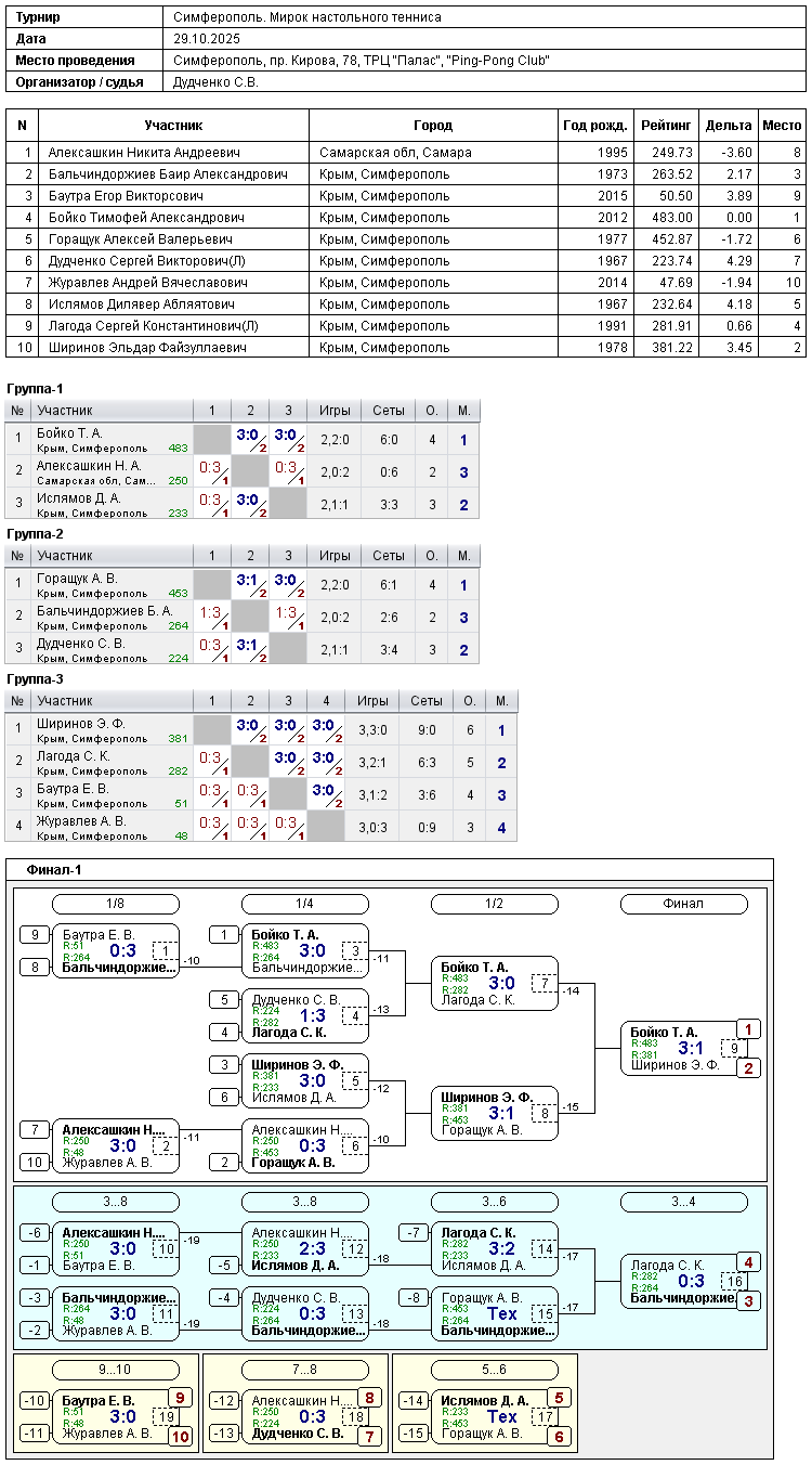 Турнир «Мирок настольного тенниса» (29.10.2025)