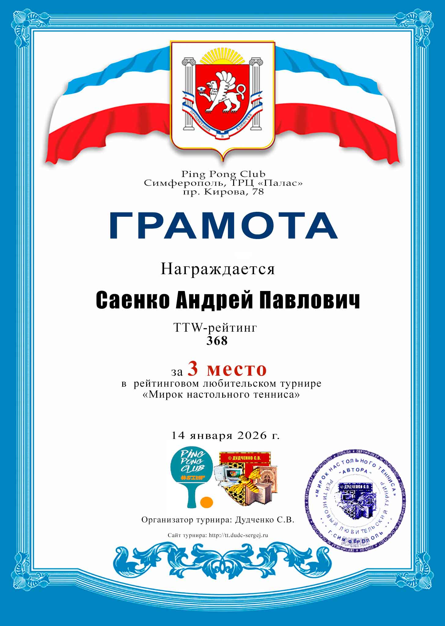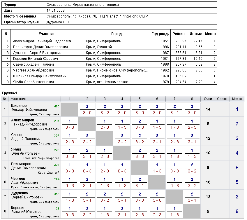 Турнир «Мирок настольного тенниса» (14.01.2026)